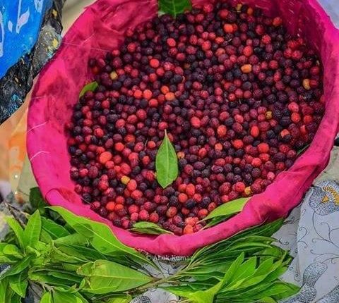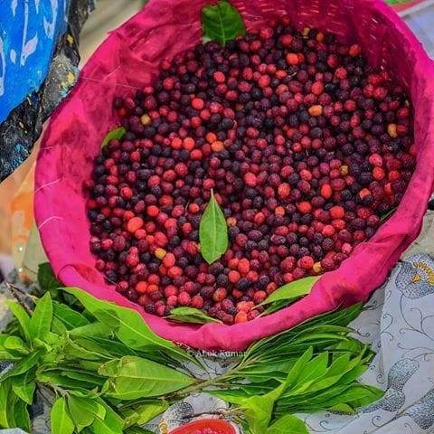 - Pahadi food is incomplete without pulses (dal) such as jholi (curry), bhatt ki chutkani, gehet ke dubke, chutney and vegetables like sisod ki sabji. kitchen of kumaun include a wide range of pulses and fruits,. Some typical Kumauni fruits are hisalu, kafal, kilmudi, malta and narangi. While juices preferred are buras (rhododendron), rose juice and malta juice. Commom pulses are gehet, masoor, toor, maas, til.