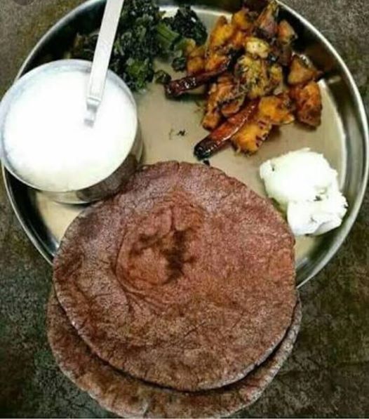 pahadi madue ki roti with ghee, hari sbji and aaloo ki sbji